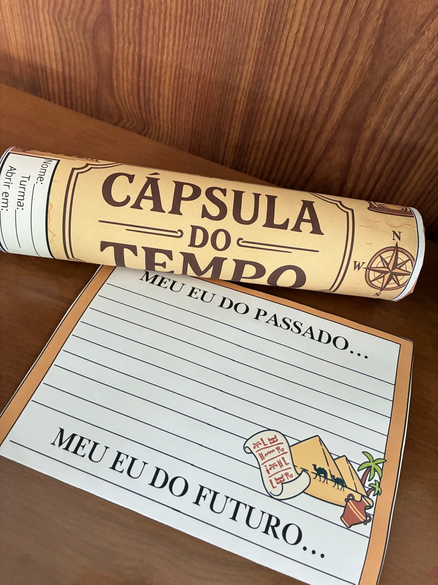 O material inclui uma folha exclusiva de reflexão, com espaço para registrar falhas, hábitos e comportamentos que precisam ficar no passado, e um espaço especial para traçar objetivos pessoais e emocionais para o futuro. Acompanha ainda uma capa temática histórica em estilo vintage, ideal para montar a lata da cápsula, deixando a experiência mais envolvente e significativa.