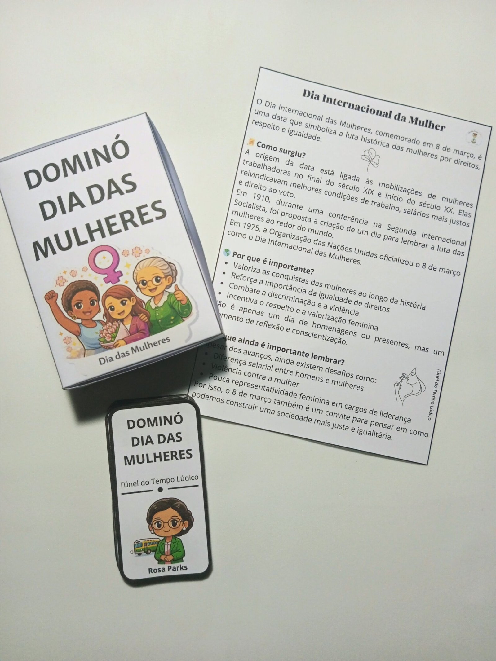 O Dominó é um recurso pedagógico interativo que transforma o conteúdo sobre o Dia Internacional da Mulher em uma experiência dinâmica, significativa e envolvente.