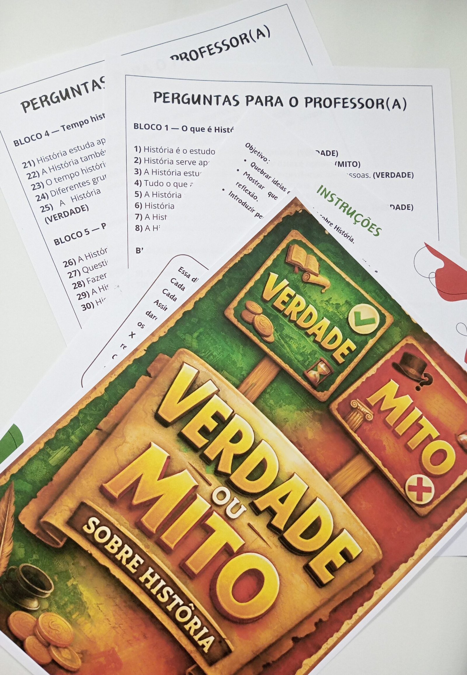 A dinâmica “Verdade ou Mito sobre História” foi criada para envolver os alunos desde o primeiro contato com a disciplina, quebrando ideias equivocadas e despertando o pensamento crítico de forma leve e acessível.