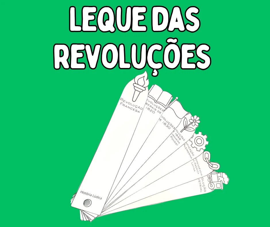 A atividade funciona como um leque interativo, no qual cada aba representa uma revolução diferente. Em cada parte, o aluno encontra espaço para registrar as informações essenciais de forma organizada: