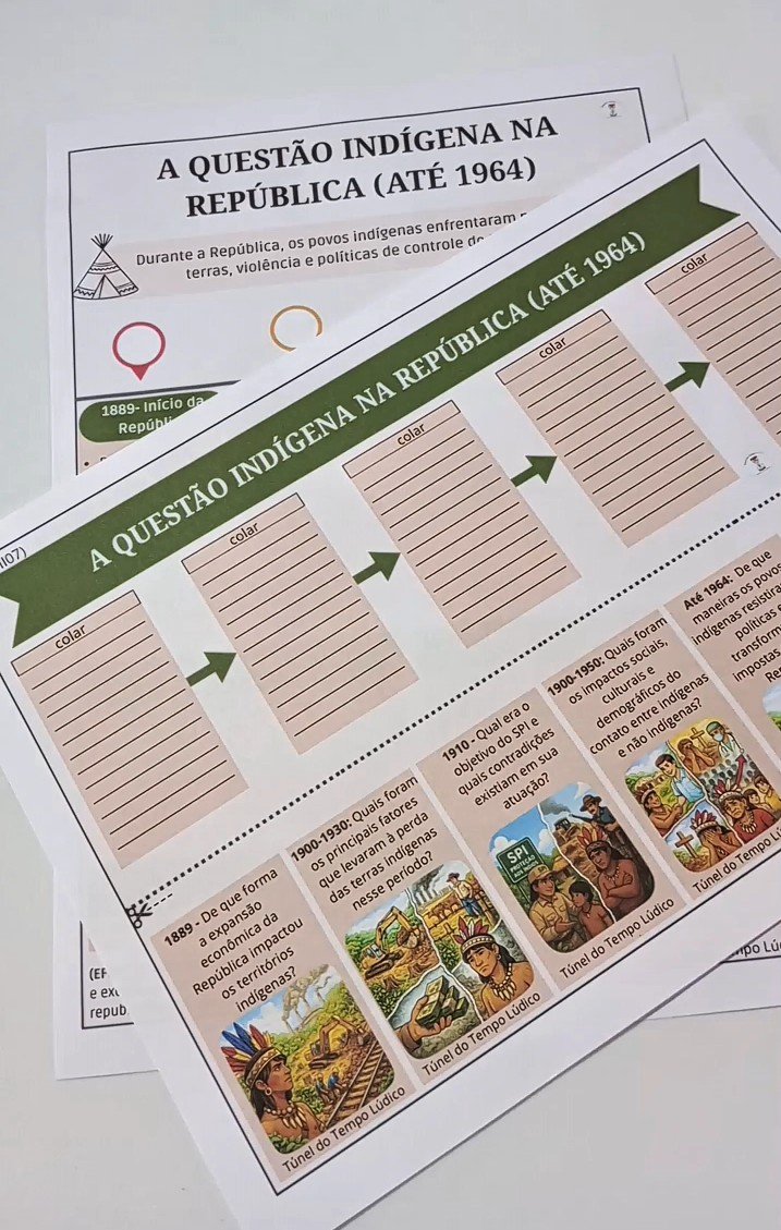 Esta atividade foi desenvolvida para trabalhar a temática da questão indígena durante a República (até 1964) de forma lúdica e reflexiva, estimulando a organização cronológica dos fatos e o pensamento crítico dos estudantes.